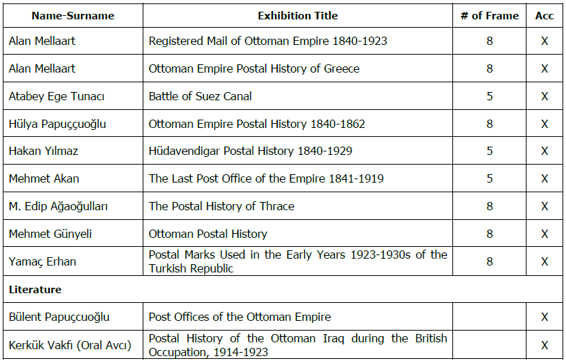 - Hülya Papuççuoğlu’nun “Prefilatelik Damga (Osmanlı İmparatorluğu Posta Tarihi (1840-1862))” koleksiyonu GÜMÜŞ,